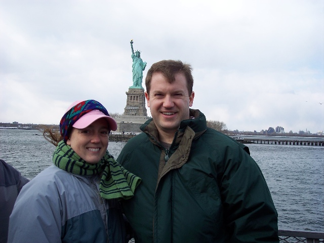 Kate and Jason with the Statue of Liberty from New York City